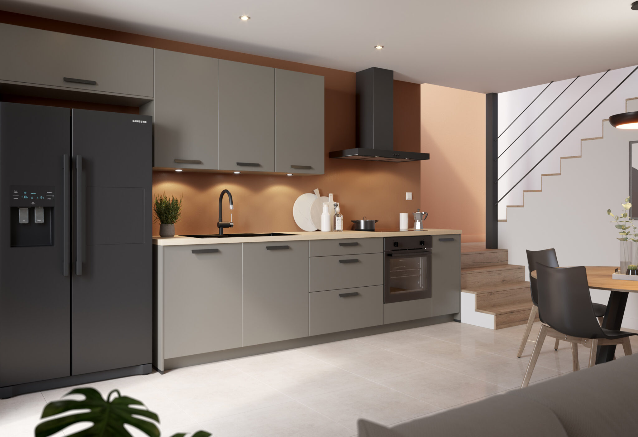 Louise en Augustin kozen voor deze compacte keuken met resoluut moderne stijl omdat ze zo praktisch is voor de dagelijkse dingen. Ondanks het kleine formaat biedt ze toch veel opbergruimte die slim werd ingewerkt, zodat elke centimeter optimaal benut is. Het strakke, functionele design bewijst dat stijlvol en efficiënt hand in hand kunnen gaan. Een mooie demonstratie van betaalbaar design, ontworpen door èggo voor kleine ruimtes, maar zonder compromissen wat kwaliteit betreft.
