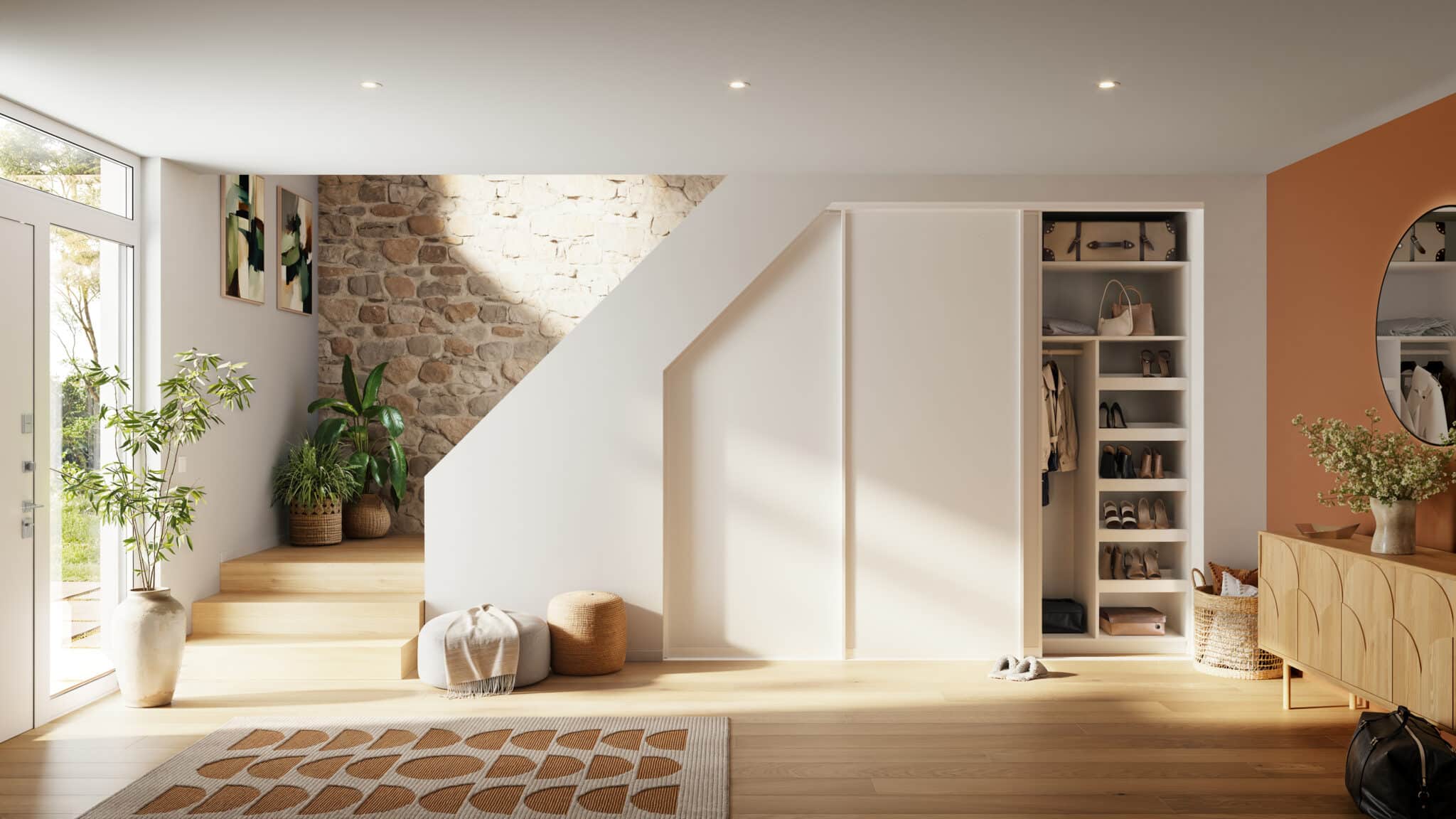 Un placard sous l’escalier pour créer un espace vestiaire