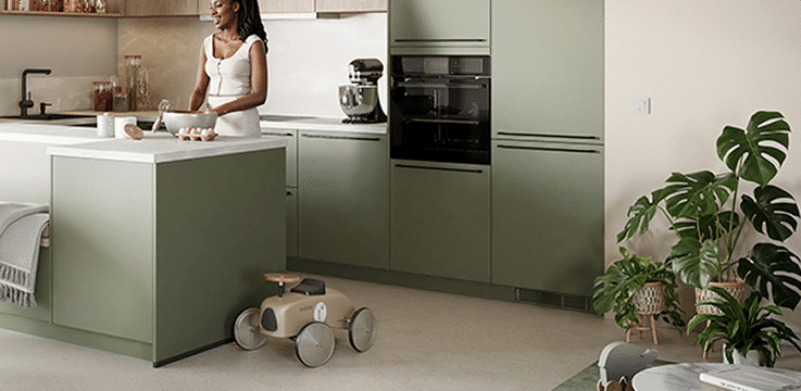 In 2025 moet een keuken er niet alleen mooi uitzien, maar moet ze ook goed aanvoelen. Met hun verticale lijnen, ‘houten latjes’-effect en bewerkte reliëf zijn houten kastfronten een echte blikvanger. De kastfronten met textuur vormen een design-element op zich. Houten deuren met omlijsting, die we tot nu toe vooral terugvonden in rustieke keukens, krijgen een nieuw leven en worden steeds moderner.