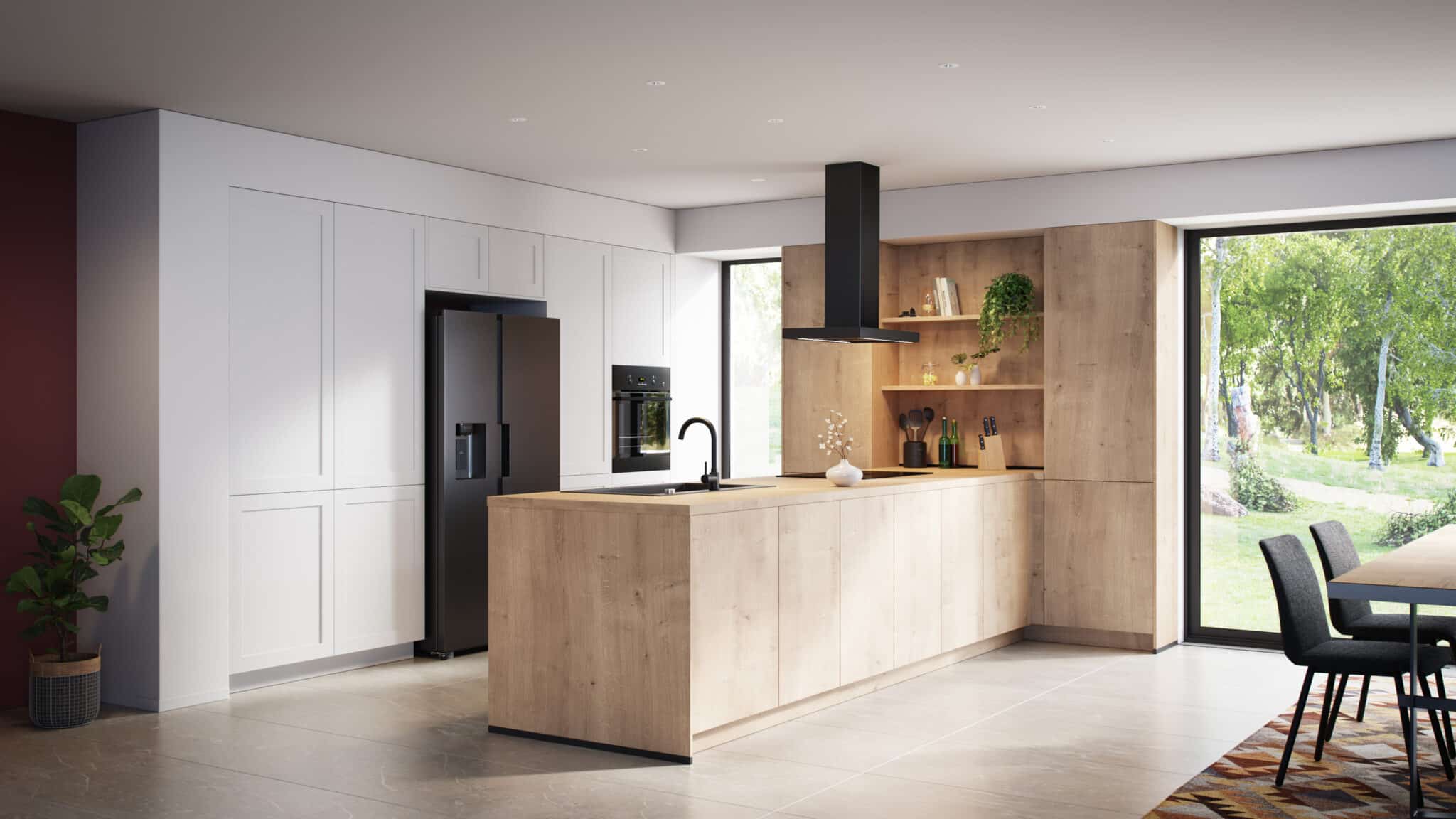 Actieve jonge ouders Kim en Simon wilden een keuken die mooi en tegelijk superfunctioneel is, zodat ze het tempo van hun leven kan bijhouden. Ze kozen voor de landelijke stijl zonder handgrepen, voor een strak en modern resultaat dat perfect past bij hun gerenoveerde interieur. Het centrale eiland is het kloppende hart van de ruimte, om aan te koken en toch de verbinding met de rest van de woning te behouden. Dankzij de XL-opbergoplossingen houden ze alles binnen handbereik, zonder de ruimte te overladen. Met de betaalbare designkeukens van èggo ontwierpen Kim en Simon een keuken met vloeiende lijnen, die goed georganiseerd en uitgekiend is voor hun dagelijks leven.