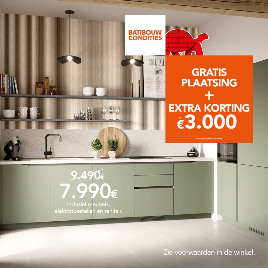 Wegens groot succes verlengen we onze straffe Batibouwcondities: tot eind maart geniet je nog van tot €3.000 korting én gratis plaatsing*